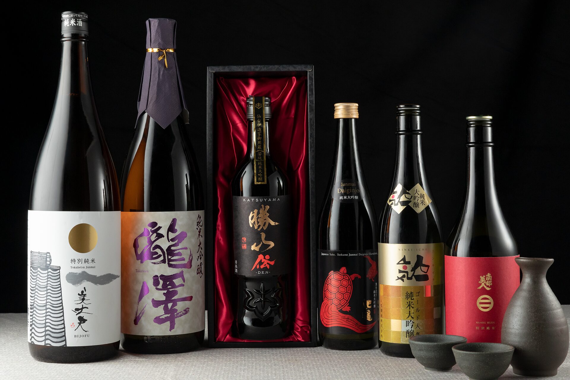 This sake combines masculine straightforwardness with feminine finesse. The high degree of polishing of the rice leads to fine flavours and complexity. A beautiful acidity and a fine umami flavour make this sake unique. The Katsuyama brewery was founded over 330 years ago especially for the famous "Date" samurai family. | 50ml 27€ 150ml 69€ 300ml 125€ 720ml 250€ |
